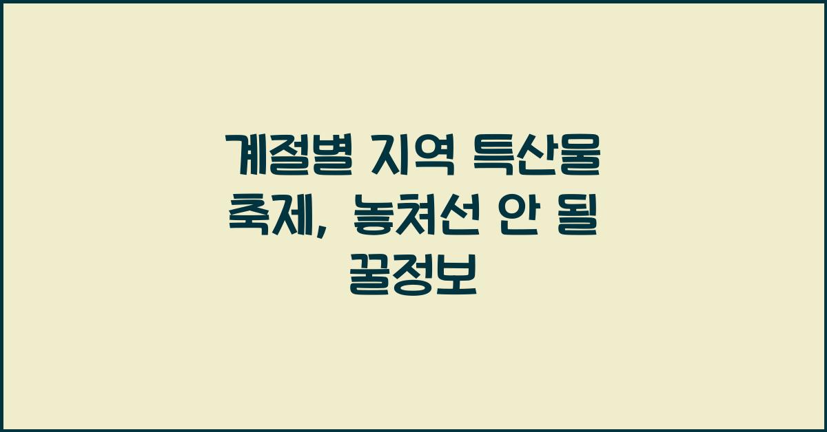 계절별 지역 특산물 축제에 대한 소개우리나라 각 지역에서는 해마다 그 지역의 특별한 맛과 멋을 살린 축제가 열립니다. 바로 '계절별 지역 특산물 축제'입니다! 이 축제들은 농산물의 수확 시즌이나 특산물의 특징을 잘 보여주는 자리가 되곤 합니다. 이런 축제들은 단순한 먹거리를 넘어 각 지역의 문화와 전통을 배우고, 여행자들과 주민이 소통할 수 있는 기회를 제공합니다. 각 지역을 대표하는 음식과 함께하는 다양한 체험은 매년 많은 관광객들을 끌어모읍니다.각 계절마다 열리는 축제는 그 지역의 제철 음식과 농산물을 즐길 수 있는 훌륭한 기회를 제공합니다. 예를 들어, 봄에는 싱그러운 채소와 꽃을 활용한 축제들이 많고, 여름에는 시원한 수박과 해산물 관련 축제들이 인기입니다. 가을에는 풍성한 수확을 자랑하는 사과,..