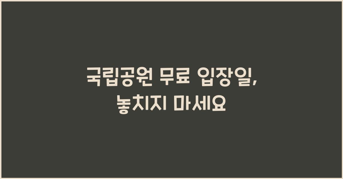 국립공원 무료 입장일, 여러분의 추억을 쌓을 기회!자연의 아름다움을 만끽할 수 있는 국립공원! 여름의 푸른 숲, 가을의 황금빛 단풍, 겨울의 하얀 눈꽃이 가득한 이 공간은 우리의 삶 속 소중한 쉼터입니다. 더구나, 국립공원 무료 입장일을 활용하면 돈 걱정 없이 자연 속에서 즐거운 시간을 보낼 수 있습니다. 그러니 반드시 이 기회를 놓치지 마세요!각종 스트레스를 잊고 자연과 함께 할 수 있는 곳. 여기서는 하이킹을 즐기고, 새들의 노래를 듣고, 멋진 풍경 을 감상하면서 몸과 마음을 편안하게 만들 수 있습니다. 국립공원 무료 입장일은 여러분의 평화로운 하루를 더욱 특별하게 만들어 줄 것입니다. 잃어버린 일상의 소중함을 다시 찾는 멋진 기회이죠.특히, 가족이나 친구들, 연인과 함께 떠나는 야외 활동은 언제나 ..
